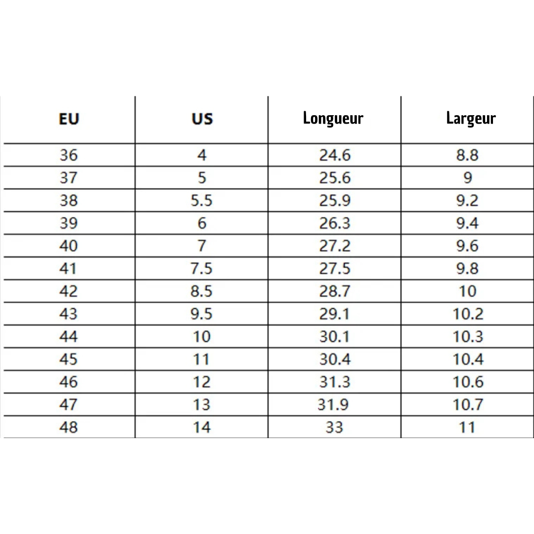 Adaptées aux pieds larges : conçues pour offrir un ajustement confortable à différentes morphologies de pieds.