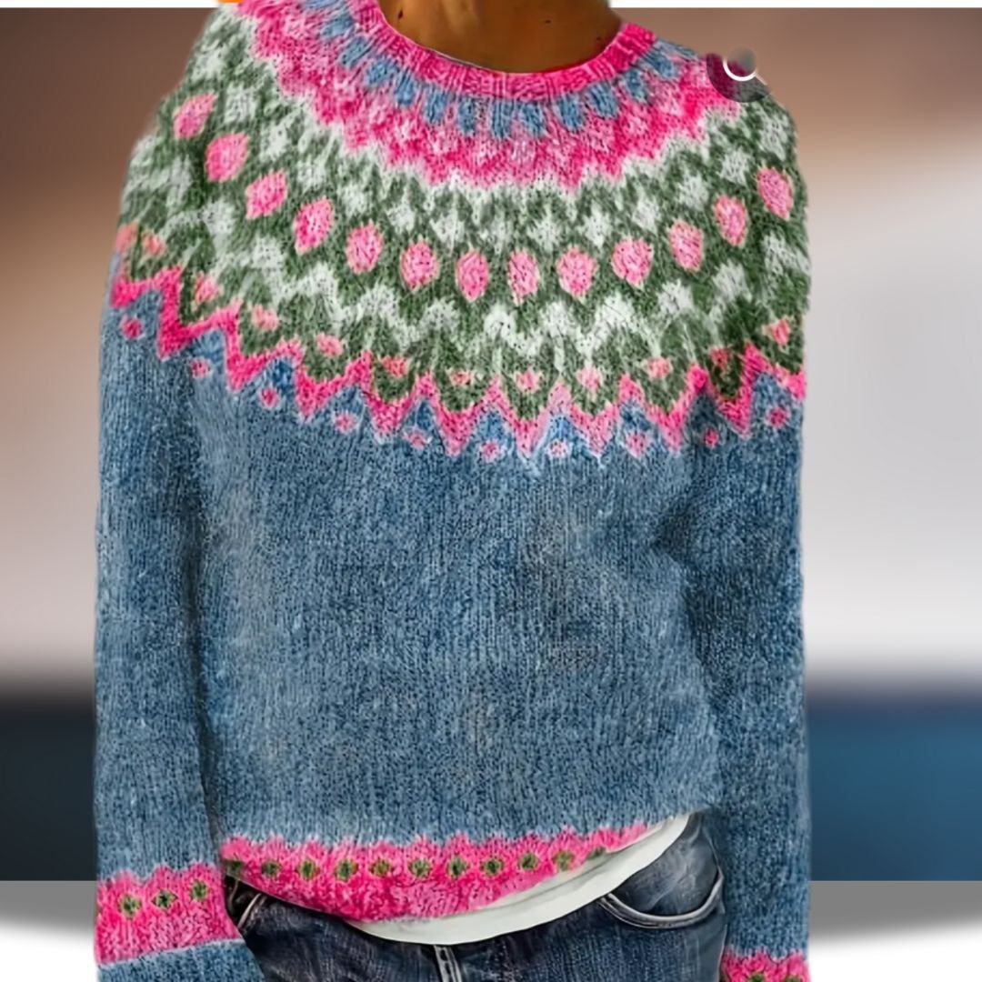 Pullover Femme Col Rond Éléguant – Design Color Block Chaud et Polyvalent.